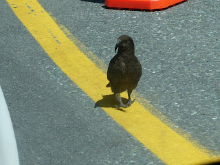 On the way home we had to stop at some roadworks and look what sauntered down the road - they have become endangered now so I was ecstatic to actually see a Kea